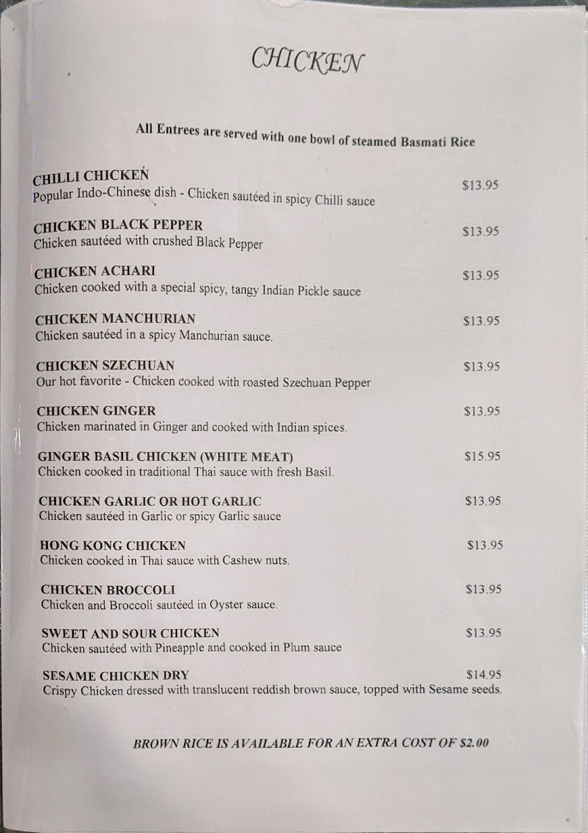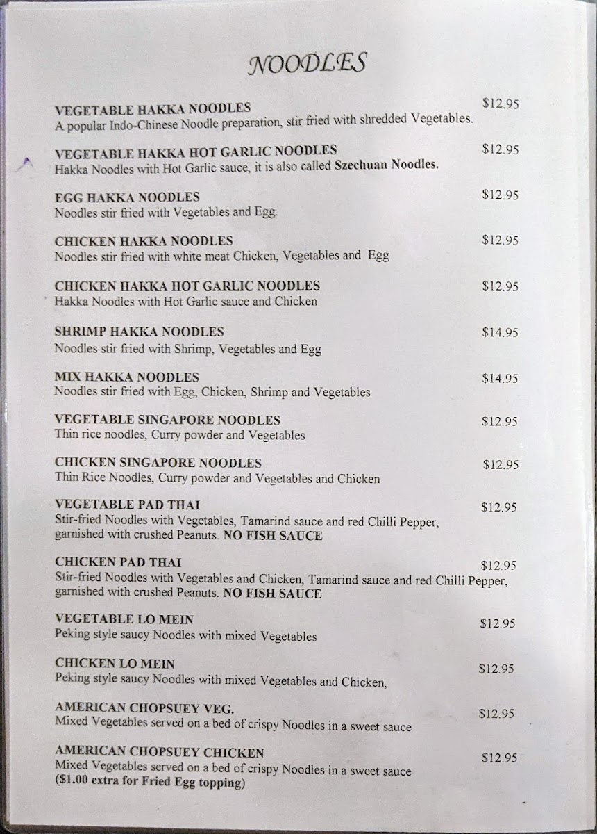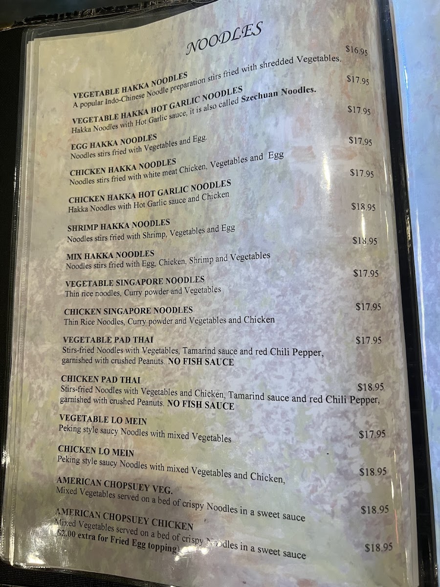 Guests often enjoy the hearty Veg Haka Noodles or Chicken Fried Rice as satisfying lunch options, while dishes like Szechuan Fish and Chili Chicken Dry bring a bit of spice and excitement for dinner. Lighter bites such as Spring Rolls and Veg Manchurian Gravy pair well with the cozy atmosphere, perfect for casual dining or relaxed gatherings. Soups like Chicken Soup and Manchow Soup provide comforting warmth, especially on cooler days.